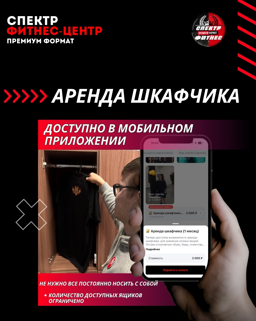 Теперь открыт доступ к аренде шкафчика прямо в мобильном приложении